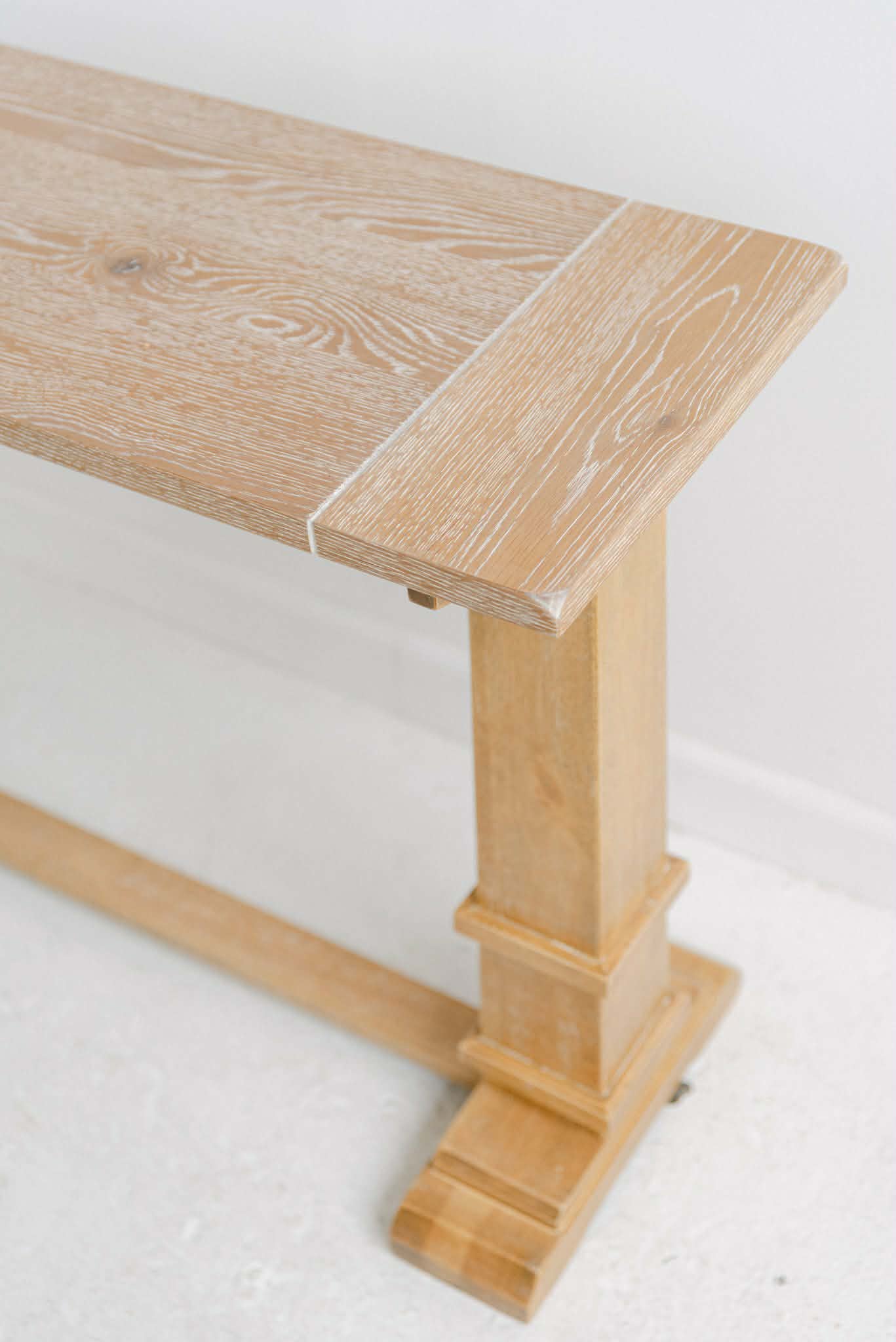 Light wood console table works great behind a sofa with florals, for a guest book or memory wall display and more!
